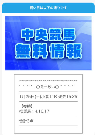 2日参加しましたが、無料情報は重賞の複勝の予想を出すようですね。