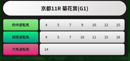 逆ファンの菊花賞の予想で14入れてくれてあったから助かったわTT これで3連複とれたから感謝でしかない 万馬券うんま~😭