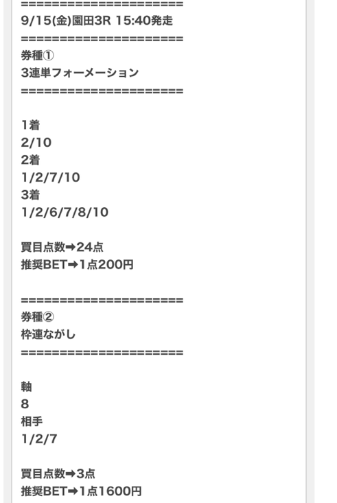 初めてこの記号での買い目見た(笑)
