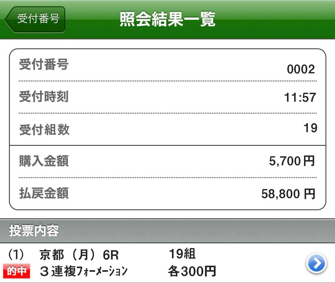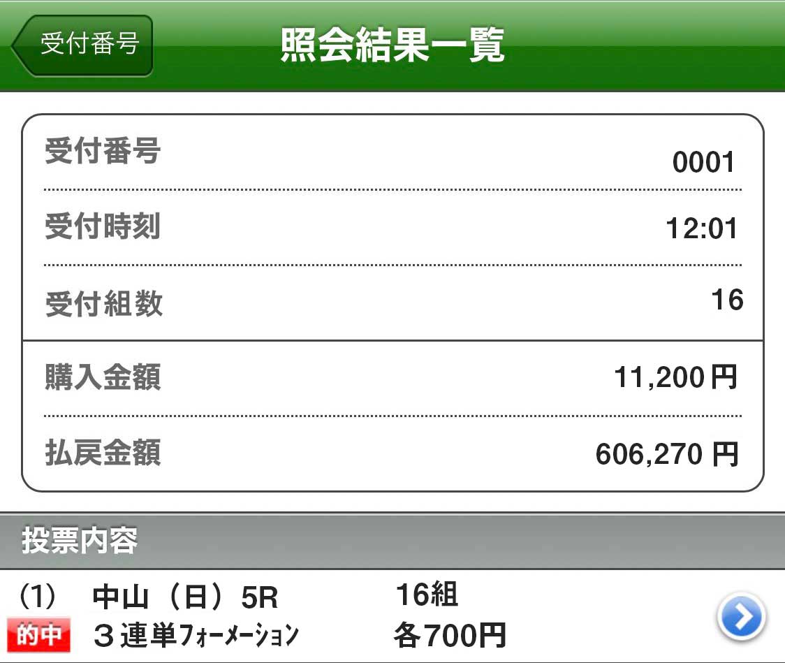 5万でも的中は的中っすね! 長期で見て1週間7日使えばちりつもで30万越え、一発狙ってはずれるよりこれくらいの的中をコンスタントに貰えた方が嬉しいですね!