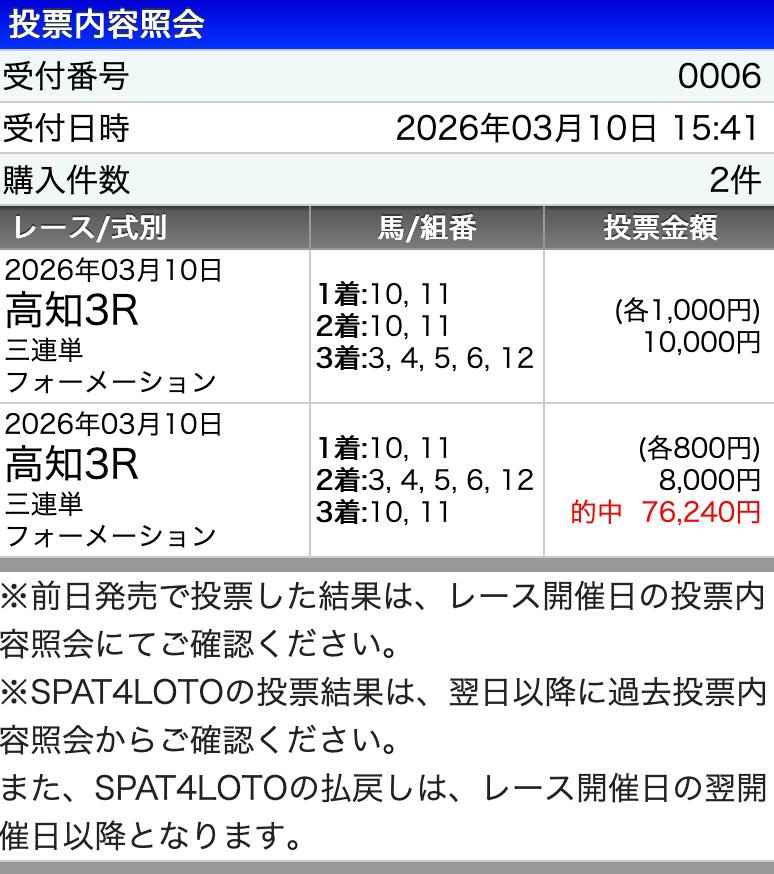 週末的中報告できませんでしたがようやく、本当にありがとうございました。 生活費無くて切羽詰まって地方競馬やりましたけど一撃50万で生き延びる事ができました。