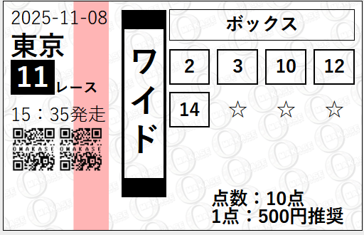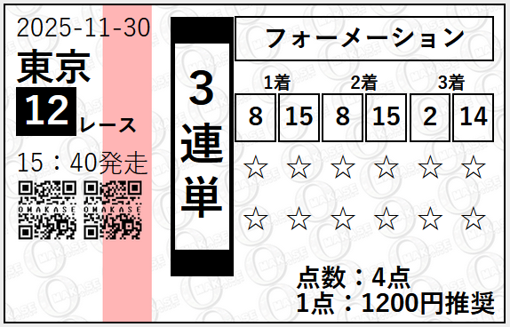約束された万馬券の買い目が届く!