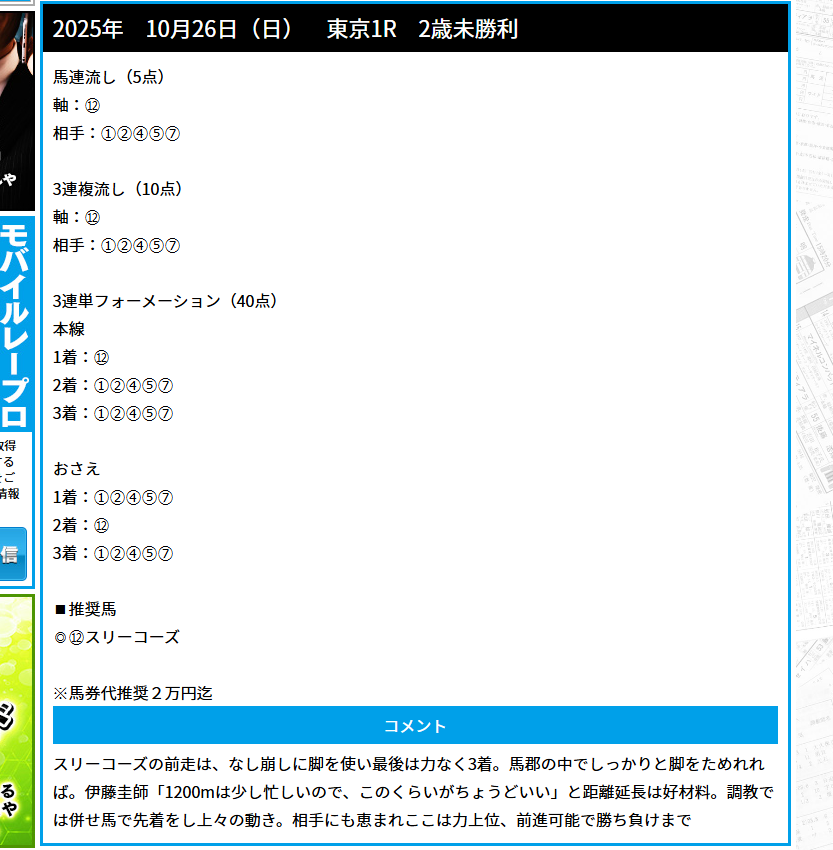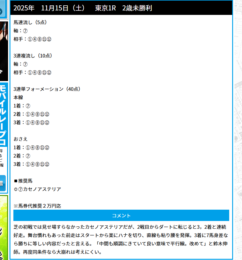 少点数買い目のご提供!